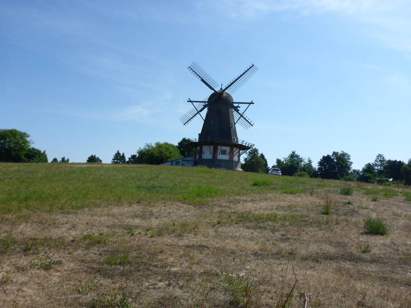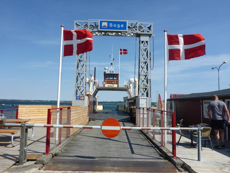 De overtocht van StubbekÇ¿bing naar Bogø, duurt maar even. Op Bogø aangekomen eerst even wat rondgefietst daar, gewoon omdat het nog heel erg vroeg is en de weg naar de volgende overnachting niet overdreven ver weg is, zo’n 40 km. Maar op Bogø is niet veel te beleven en na een half uurtje ga ik dan toch maar richting Hjelm, dat ligt weer op een ander eiland maar daarvoor ga je over een lange dijk en brug, met gelukkig een fietspad want anders was het wel erg druk geweest op de brug en bovendien een beetje erg gevaarlijk denk ik.
