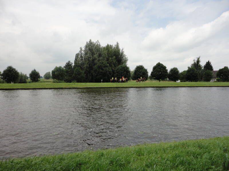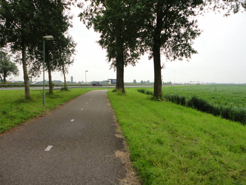 Het is nog steeds mooi weer al is het wel wat frisjes op de fiets. Aangezien ik een korte broek en alleen een T-shirt aan heb besluit ik toch maar even een fleece-jas aan te doen. Misschien dat ik dat beter niet had kunnen doen? Even later begint het te regenen. Ik rijd als het ware door een gordijn van regen heen. Heel fijne motregen. Ik snapte er even niets van. Honderd meter verderop was het weer over. De lucht was nog wel donker maar het was wel weer (droog), op een paar spettertjes na. Het was dus wel regen.