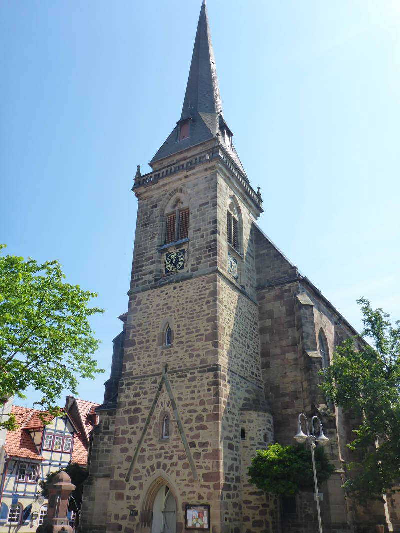 Nu kan de rit pas echt beginnen. En halverwege begin ik een donkerbruin vermoeden te krijgen dat ik waarschijnlijk vanmiddag wel heel erg vroeg in Ringgau ben. Dan maar wat vaker rusten en wat meer foto’s maken. Tegen twaalf begint mijn maag te rammelen, tijd voor een hapje. Bij een plaatselijke grootgrutter wat lekkers te eten gekocht en een halve liter karnemelk met vruchten. Heerlijk buiten opgegeten en na de maaltijd weer verder langs de Herkules-radweg. De natuur is afwisselend, grote graanvelden en vele bossen.