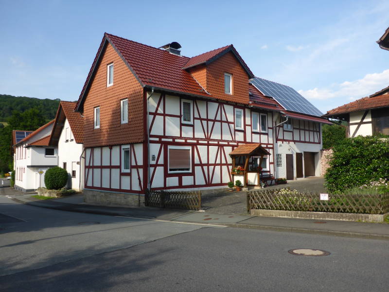 Aangezien Ringgau maar een piepklein dorpje is, is de staat ook snel gevonden. Op de deur hangt een briefje met de boodschap “Ik ben er niet”maar er is een telefoonnummer bij die ik bellen mag , dan komt ze eraan. Ze is Iris de uitbaatster van dit pension. Ik druk het nummer dat op het briefje staat. Er wordt opgenomen en enigszins verbaasd is het antwoordt , bent U er nu al. Ik zeg, ja. Oh, maar dan kom ik eraan hoor. Ik wil nog zeggen doe maar rustig aan maar er is al opgehangen (of doe je dat niet bij een mobiele telefoon?)