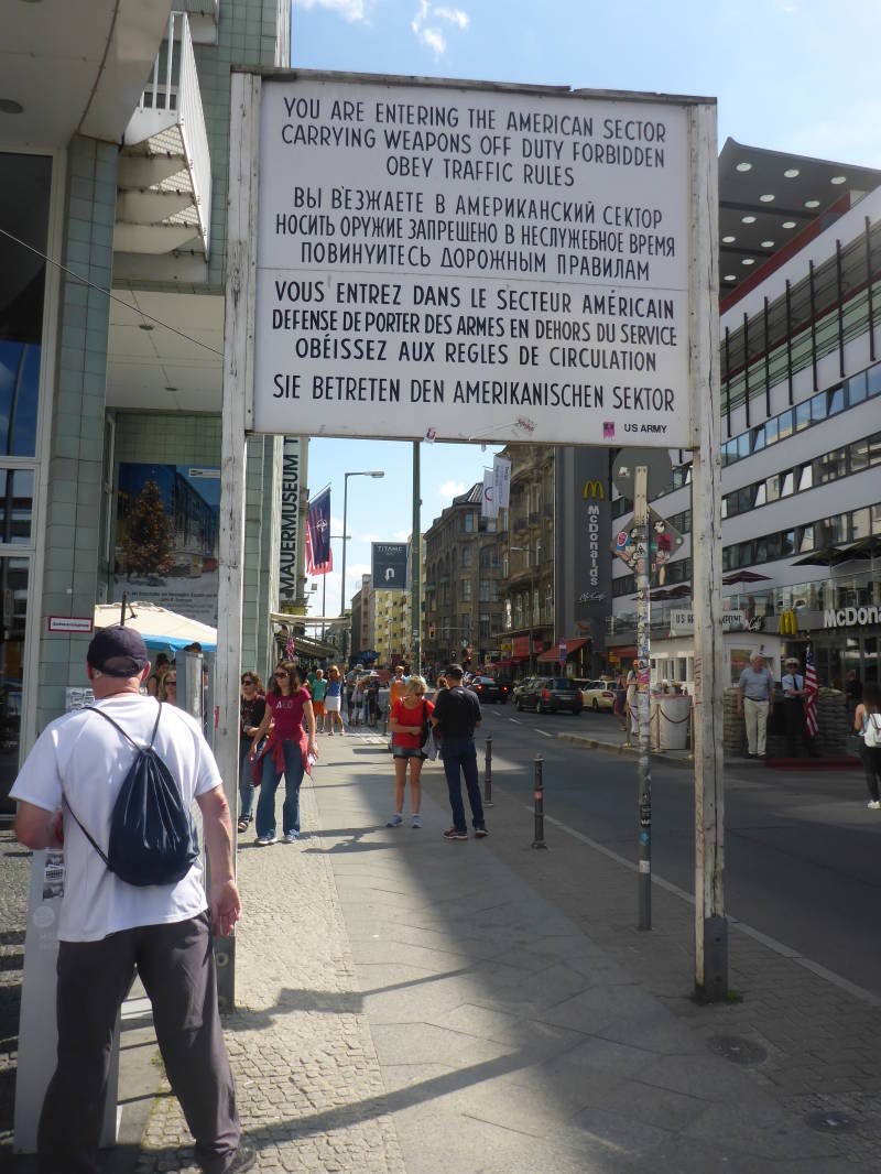 Daarna de geschiedenis van het ontstaan van de muur gefotografeerd . Toen ergens de draad weer opgepakt met de Hop on- Hop off bus. Kurfurstendam. Bahnhof Zoo en Checkpoint Charly bezocht. Hierna maar weer een wandelingetje naar de Gendarmenmarkt. Na alles bezichtigd en gefotografeerd te hebben en wel erg veel water en cola te hebben gedronken en ook wel erg moe begin te worden maar een rustig plekje opgezocht en een wel verdiend pilsje gedronken. Maar van drinken krijg je soms ook honger en het word tijd om eens wat fatsoenlijks te eten. Alleen het gekke is dat ik juist vandaag heel erg veel lekker restaurantjes ben tegengekomen en op het moment suprême er niet een weer kan vinden. Na een rondje Alexanderplatz ga ik maar weer terug naar een Mexicaans iets waar ik een steak van varkensvlees met een gemüse salat bestel. Valt een beetje tegen maar honger maakt rauwe bonen zoet. Daarna naar het hotel om het verhaal van vandaag te schrijven en de administratie bij te werken.