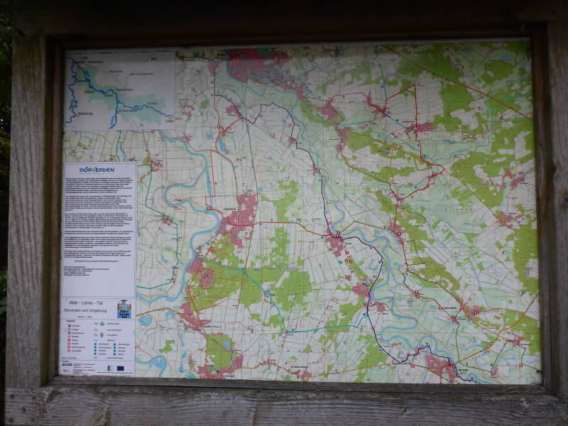 Ik heb deze vakantie iets met het niet opladen van bepaalde apparaten. Nu de navigatie weer. Heeft de hele nacht aan de lader gelegen maar is niet opgeladen. Staat op 40% en dat is niet genoeg om in Bremen te komen. Dus maar weer aan de powerbank maar ook dat is geen succes hij wil echt niet opgeladen worden. Dus dan maar een poosje uitzetten en gewoon de Wezerradweg volgen. Hier worden de bordjes redelijk goed neergezet.