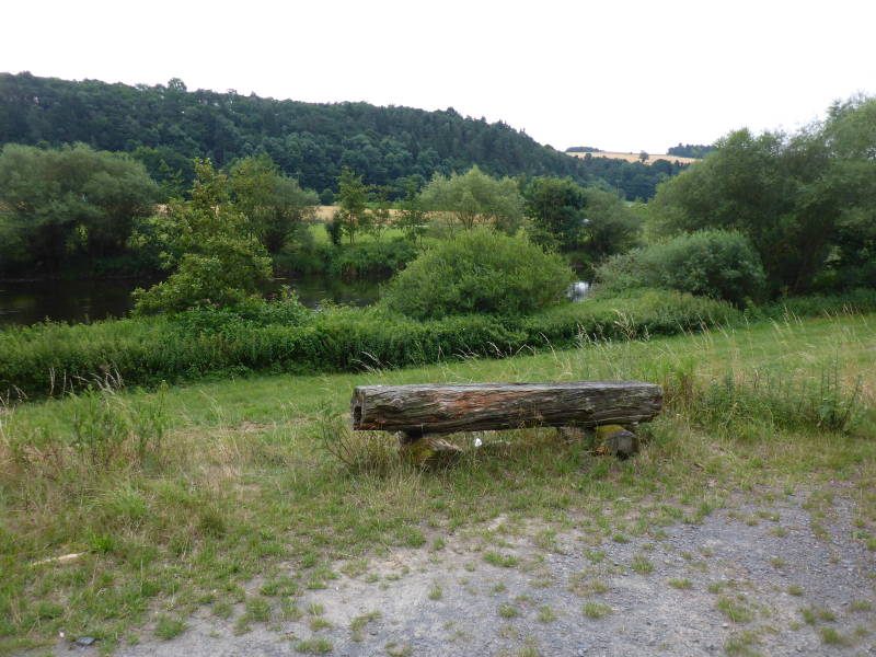 Google-maps en de werkelijkheid is toch iets anders. Af en toe kom ik mensen tegen die ik al eerder ben tegengekomen vandaag, dat zijn mensen die kleinere rondjes Edersee rijden, dat kan schijnbaar. Geeft niet ik rijd van A naar B. Voor crossfietsen is dit een paradijsje. Na een broodje en wat drinken gaat de reis verder naar Fritzlar nog bijna 30 km voor de boeg. Dwars door een natuurgebied met groot bos en natuurlijk de Eder die net als een paar andere rivieren aardig aan het indrogen zijn. Je kunt nog een beetje zien hoe hoog het water ooit heeft gestaan.