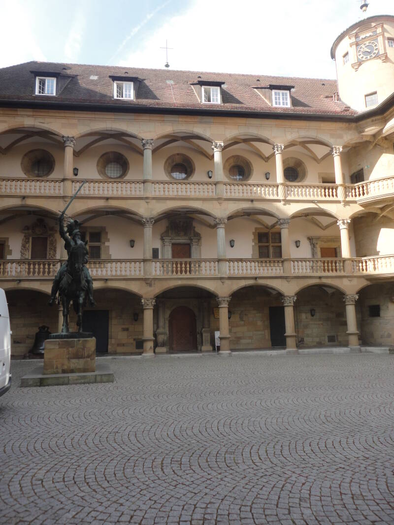 Maar dan is het zover, gewapend met fototoestel en mobiele telefoon, rose rugzakje, Garmin voor het geval ik de weg toch nog kwijtraak ga ik richting binnenstad van Stuttgart. Gisteravond had ik nog zoiets van ik neem een dagkaart op het openbaar vervoer maar dat is onzin. Het is schitterend weer en na even zoeken vind ik de weg naar Altstadt. Stuttgart is druk, het verkeer rijdt je aan alle kanten voorbij en ik bedenk mij dat ik hier morgen ook deel van uitmaak met mijn fiets. Mijn hemel ik mag wel eerst eens een Tourist Informatie opzoeken die mij hierin een beetje gaat helpen. Maar eerst eens even wat foto’s maken van het verkeer, dan gaat de voettocht verder. Maar omdat de kaart die ik gekregen heb van de hoteleigenaar een beetje onduidelijk is kom ik er achter dat ik de verkeerde kant op loop. Ik loop als het ware van de kaart. Dus maar even oversteken en de andere kant oplopen. Zo, nu gaat die goed. Na zo’n half uurtje lopen ben ik in het hart van de oude binnenstad.