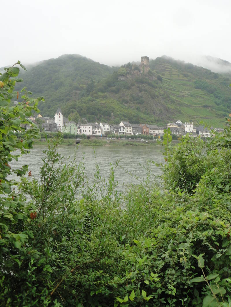 En het regent weer maar heel in de verte word het een beetje lichter aan de hemel. Even voor St.Goar is het droog. En nu maar hopen dat het echt droog blijft.