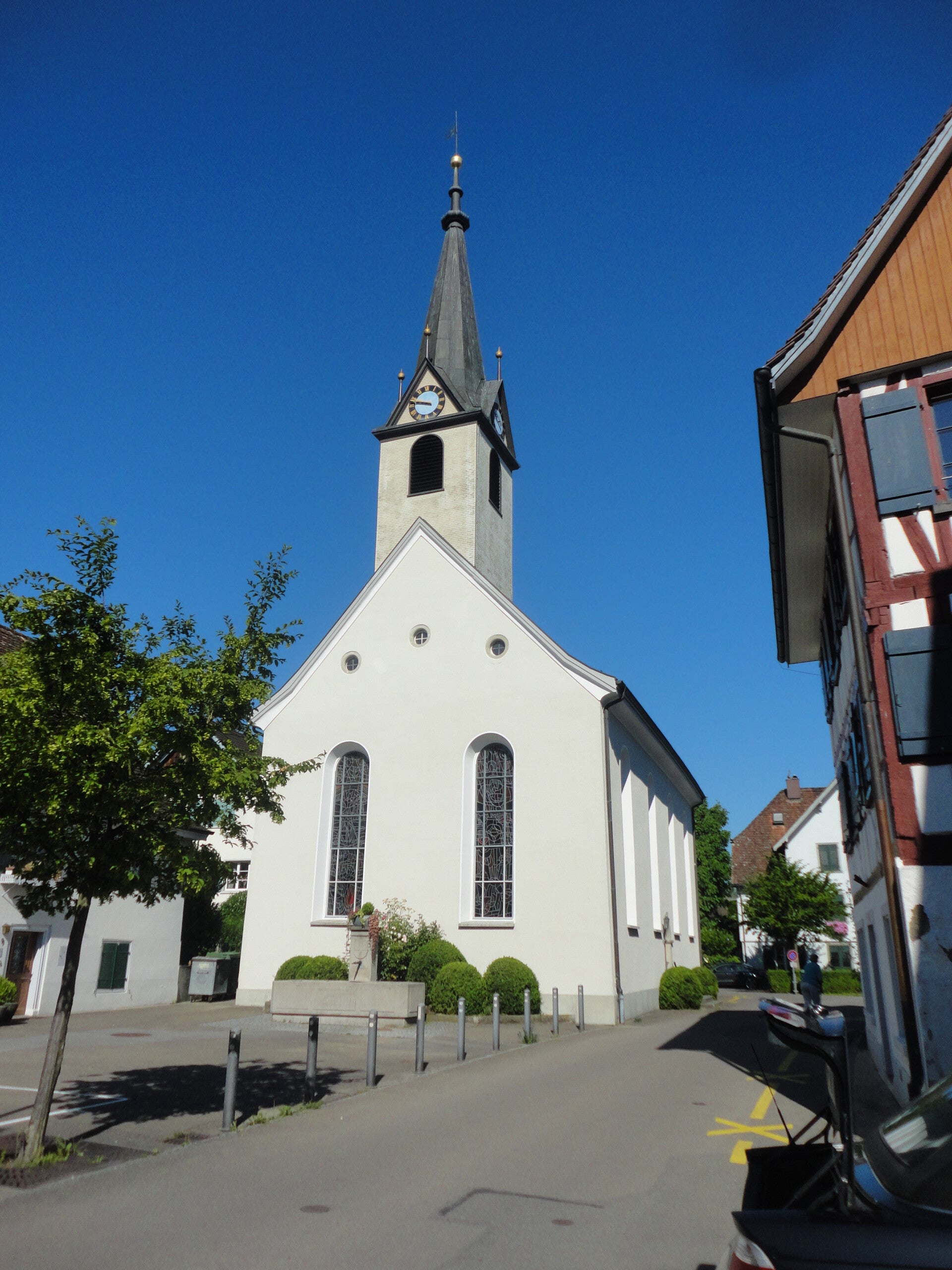 Het is ondertussen bijna 13.00 uur en wanneer ik nog naar Reichenau wil moet ik nu opschieten. Dus de fiets van de parkeerplaats gehaald eindje lopen met de fiets want het gaat hier nog steeds behoorlijk steil omhoog. Maar aan ieder berg komt een eind, dus zo ook aan deze. En nu naar beneden, had ik nu maar eerst even op een kaart gekeken dan had ik geweten dat is aan de kant van Ermatingen er ook weer af had gemoeten. Nu kom ik een heel eind van Ermatingen uit en is de weg naar Mammern wel erg ver en ja je raad het al de veerboot gaat net voor mijn neus weg, over een dik uur vertrekt er weer een veer maar dat is te laat. Waarschijnlijk mag ik geen uitstapjes maken. Want gisteren ging Mainau niet door en nu dit.