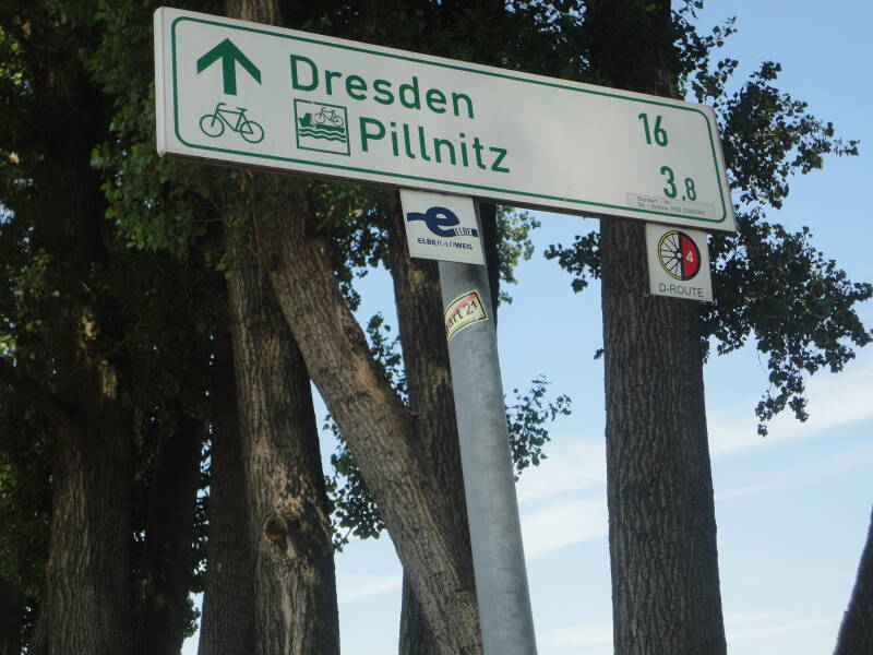 Even wennen dus aan de West-Europese prijzen. Maar de eiskaffee is lekker. Verder gaat het weer richting Dresden. Het zou nog een behoorlijke tijde duren voordat ik Dresden ben. En het wordt steeds maar warmer en warmer en warmer. Bloedheet wordt het. Het windje dat waait brengt een klein beetje verkoeling maar niet veel. Ik heb één gelukje, ik hoef niet echt op bordjes te letten want er zijn behoorlijk veel mensen die de Elbe-route doen op de fiets, dus je fiets gewoon de meute achterna.