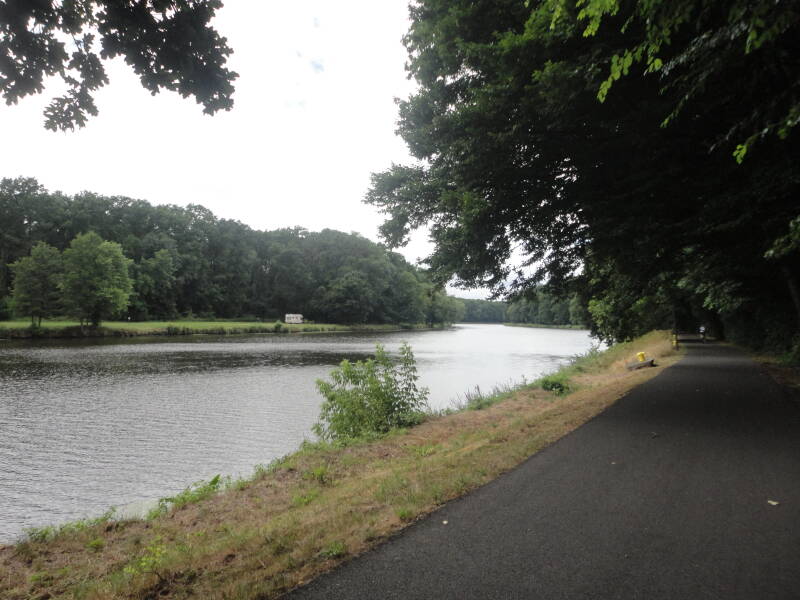 De weg gaat vandaag vlak langs de Elbe maar ook door het bos. Ik ben benieuwd. Maar het gaat ook over haast onbegaanbare weggetjes met veel hobbels en bobbels, los liggende stenen en meer van dat onappetijtelijk gedoe, Het is maar goed dat het droog is en dat het vannacht niet zo erg geregend heeft,