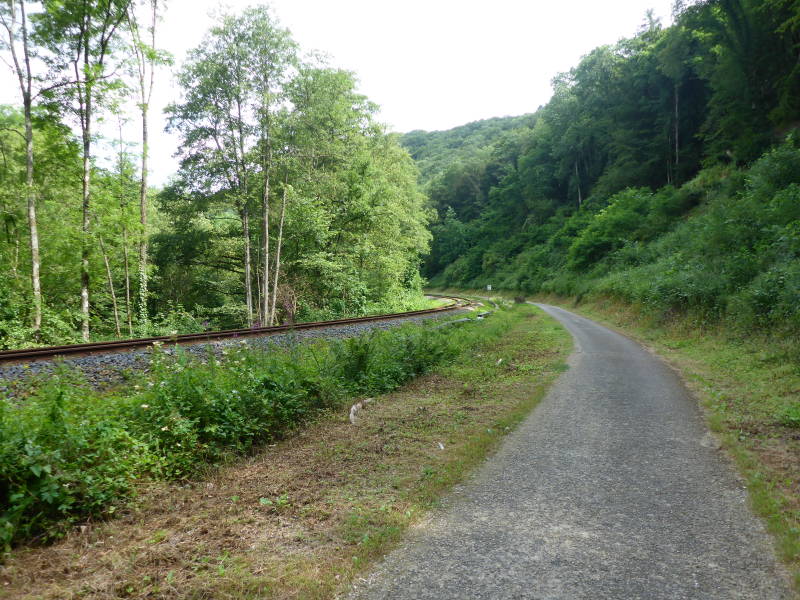 Maar voordat dit alles zich afspeelde ben ik wel zo eigenwijs geweest om er te komen via de officiële Kyll-Radweg. Maar ik werd na een paar kilometer teruggestuurd door een aardige jongeman met een glazen oog die daar met een paar collega’s aan het werk was om iets met een tunnel te doen.