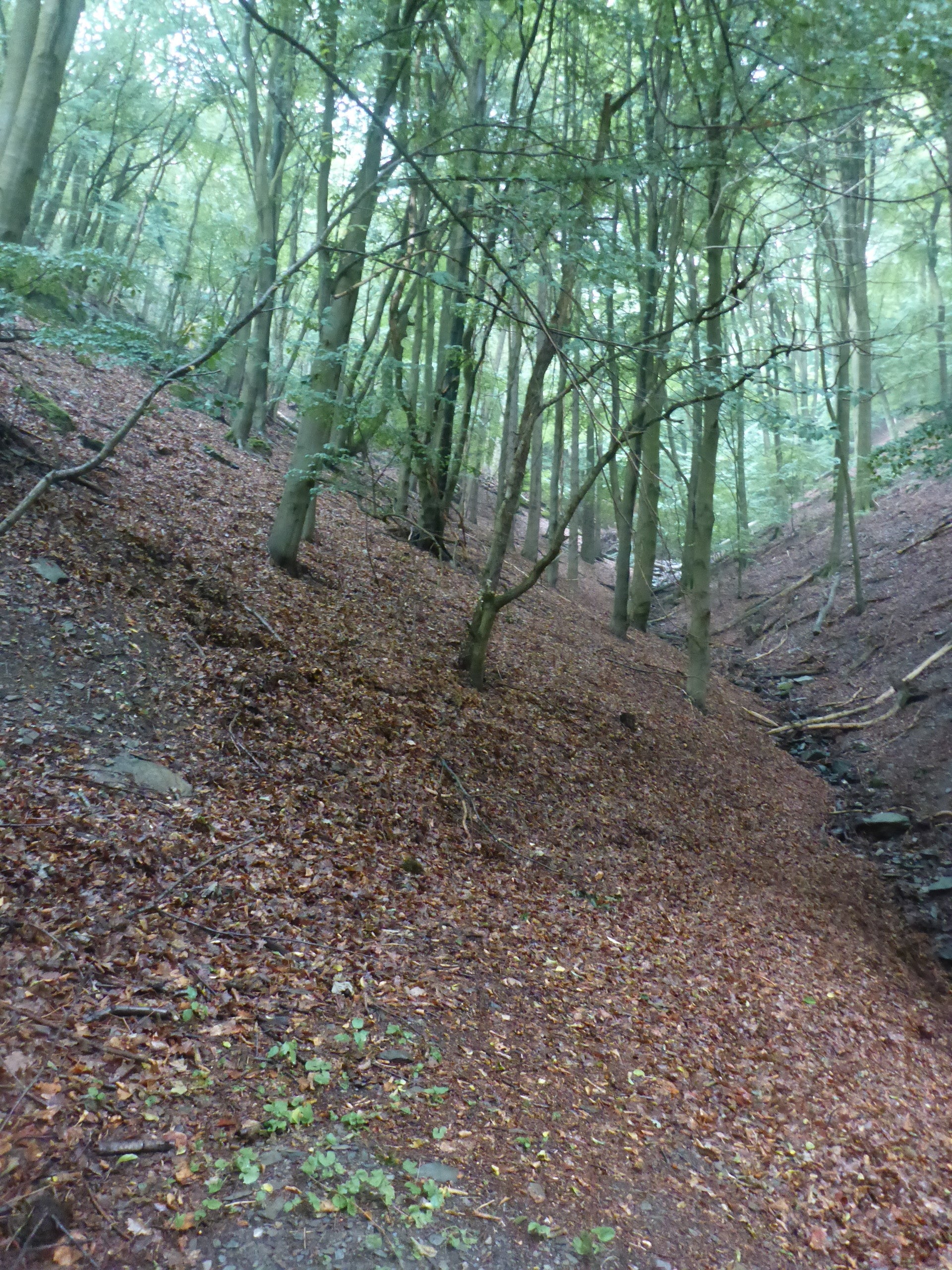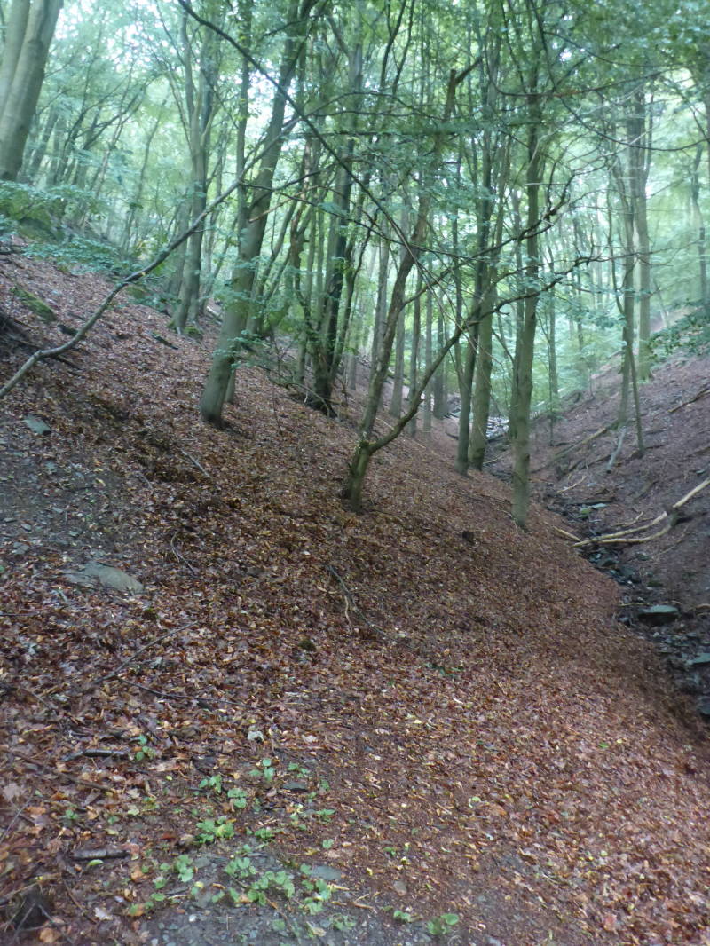 De route gaat verder dwars door een bos dat langs de oevers van de Ruhr ligt. Tot Heimbach een groot bos. Af en toe een heuveltje op maar grotendeels heuvel af. Hoewel het nog steeds een beetje motregent is de temperatuur goed, eigenlijk is het een beetje benauwd weer.