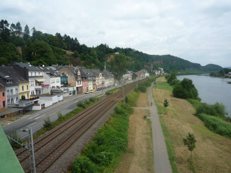 Dat is in dit geval bij het hotel de Römerbrug over, dan linksaf en dan steeds maar rechtdoor, voor zover dat mogelijk is. Want de Moezel kronkelt behoorlijk. In het volgende hoofdstuk meer daarover.